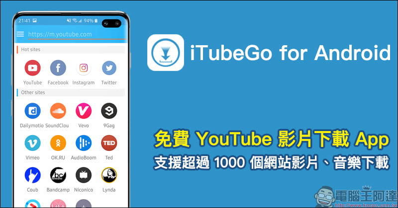 無論是 iOS 、 Android 或是電腦平台,我們過去都介紹過相當多種 YouTube 下載工具、 App 或網站,針對 Android 使用者我們這次要再分享一款非常好用的下載 App —「iTubeGo for Android」,它除了能 YouTube 平台上的影片下載至 Android 手機,就連 Facebook 、 Instagram 、 Twitter 等超過 1,000 個網站的影片都能下載!而且影片支援最高 4K 高畫質、 MP3 音檔則支援最高 320kbps 音質。