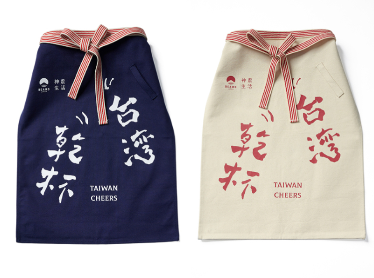 在日本為了防止勞動時衣服破裂並有保護腰部作用,被酒商、米商等搬運工人廣泛使用的半身圍裙,以耐用的帆布材質與紅白配色織帶為普遍的基本款式。 江戶時代起,開始流行將商店字號印製於圍裙上,並贈送予客戶作為廣告宣傳之用。 此款Beams Japan與神農生活共同企劃的半身圍裙,參考居酒屋店員使用款式,於側邊設計毛巾掛耳, 並隨商品附贈開瓶器。