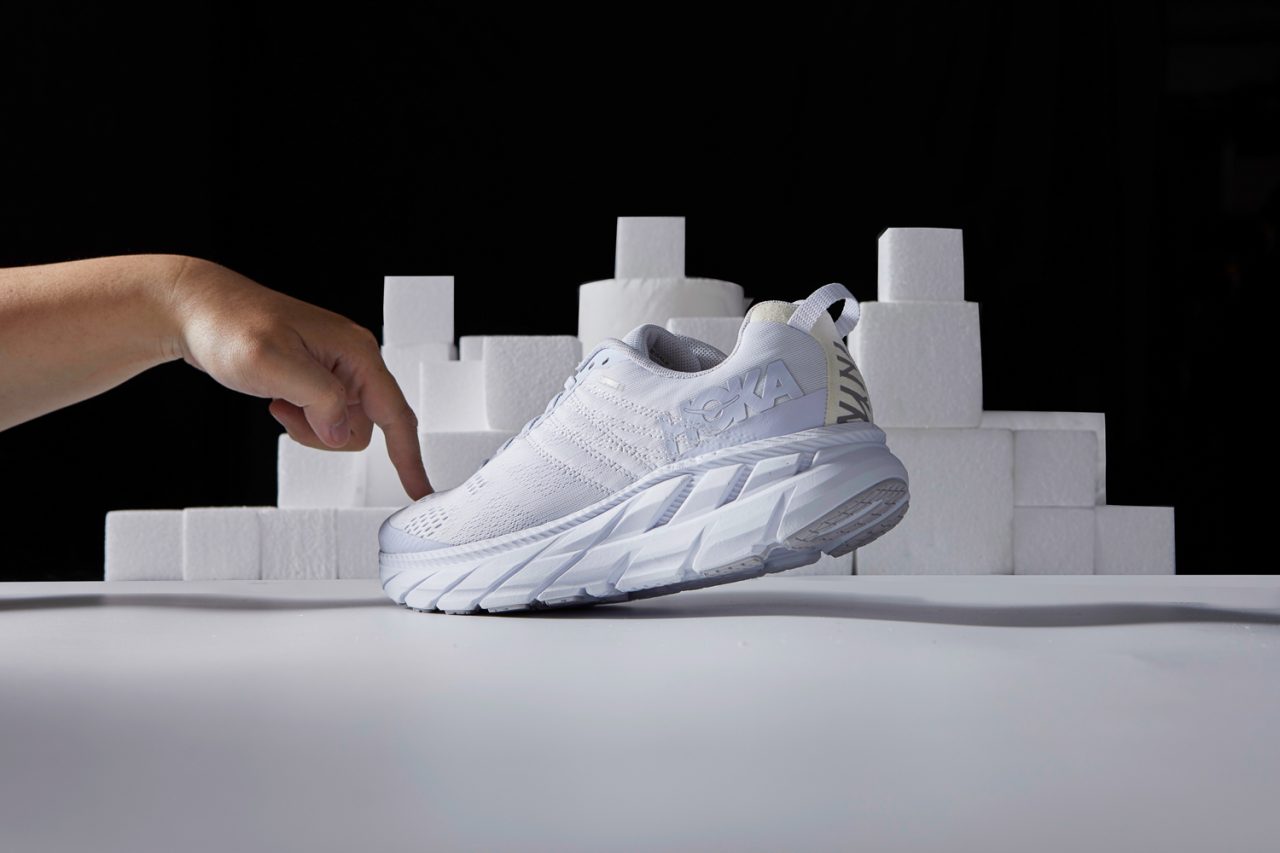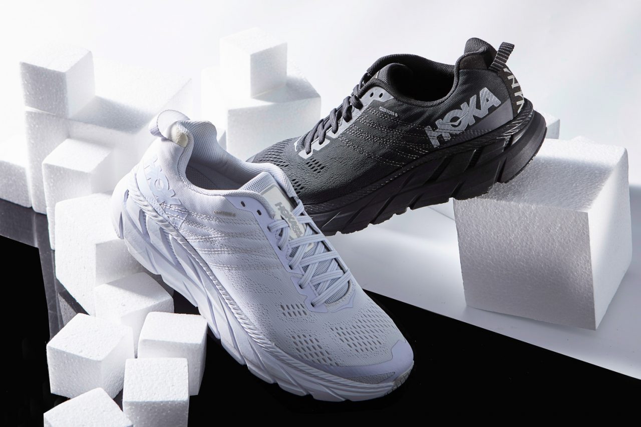 相對於 Bondi 來說, Clifton 6 外型更親民一些,後跟高 “ 只有 ” 29 mm ,其實還是保有相當的厚底視覺。擁有著跑鞋靈魂的 Clifton 6 ,在一般鮮豔配色的跑鞋上頭,的確是個速度的奔馳前鋒,在路跑上受到許多跑者的青睞。而轉換一下外衣配色風格,全黑與全白的視覺,將鞋款轉換身份成為日常搭配的利器。