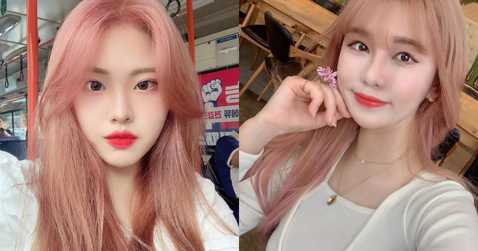 這一款髮色是最近超多韓妞在染的櫻花系髮色!他在櫻花粉中帶有一點杏色,很提氣色、襯白肌,染完之後根本就是行走的花朵啊~不過這款髮色因為底色需要漂得比較淺,所以染髮後要好好護髮,才不會讓頭髮變稻草!