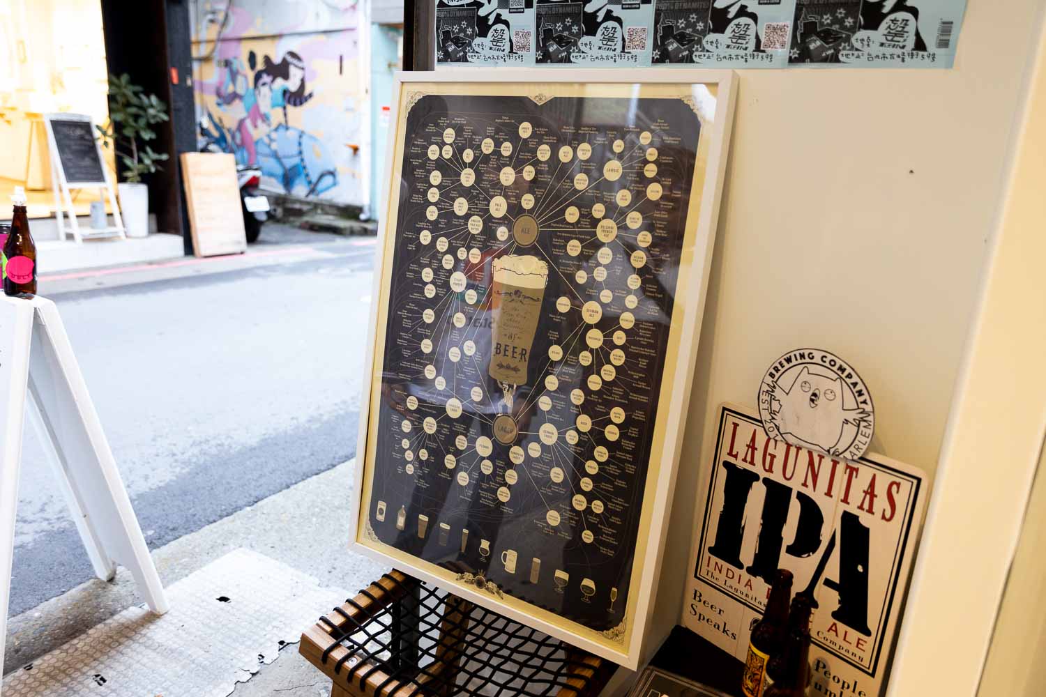 其實啤酒的種類很多,Peggy細細道來:「啤酒煮沸會分上下層,下層清爽的叫Lager,上層口味比較重的是Ale,我們店沒招牌,這張啤酒圖就代表罄 TCHIN Music × Beer。」
