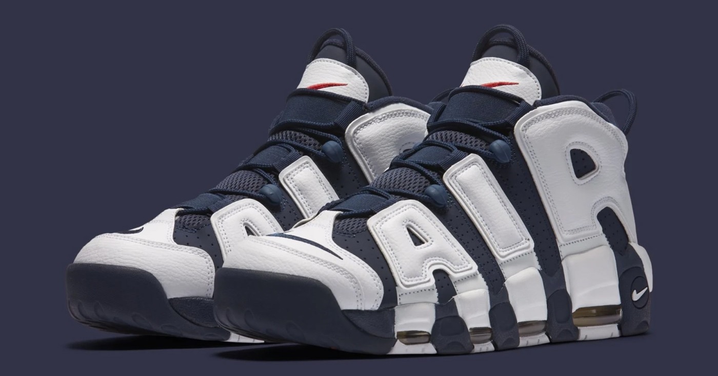 Nike Air More Uptempo ‘Olympic’ 是以 1996 年美國奧運為主題配色,當年國家隊成員如 Charles Barkley、Scottie Pippen 等人都著用出賽,鞋款發售後也成為了「大 AIR」的經典配色之一。Air More Uptempo ‘Olympic’ 之後在 2012 年、2016 年分別復刻了一次,開啟了每 4 年一次的奧運年復刻週期,算起來今年已經是鞋款第 3 度復刻了。