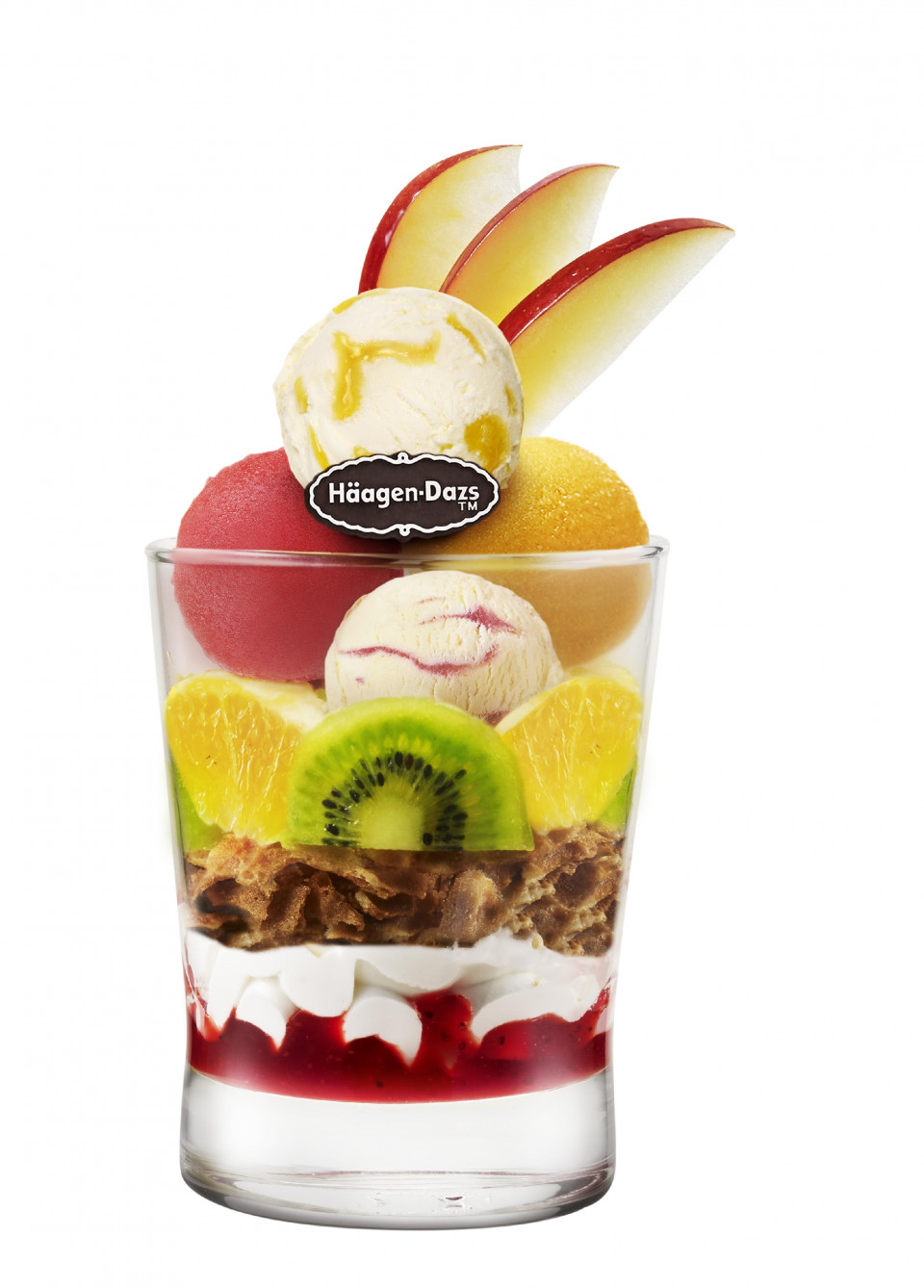 除了冰淇淋蛋糕之外,哈根達斯也同步推出繽紛的創意餐點,像是有舒芙蕾、巴菲,每款都不會讓人失望的!其中新「果漾巴菲」登場,這款是以橙香柚子、白桃覆盆子冰淇淋及覆盆子、芒果雪酪搭配奇異果及香橙水果,多層次的豐富口感,吃起來酸甜迷人,即日起至4月3日前每週五還推出「巴菲系列冰淇淋買一送一」活動喔!