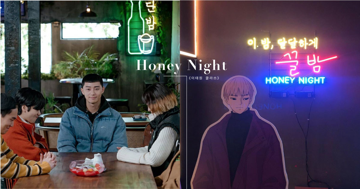 熱門韓劇《梨泰院CLASS》中,由朴敘俊飾演的朴世路在爸爸過世後,決定要在梨泰院開設酒館,經過多年的努力總算成功經營起這家「甜夜酒館」,而在劇中為主要場景的「甜夜酒館(단밤포차)」,其實並不是作者虛構出來的~這家「甜夜酒館」的原型正是一間同樣在梨泰院經營的酒館,名字一樣也叫「甜夜(꿀밤포차)」,英文名是Honey Night。