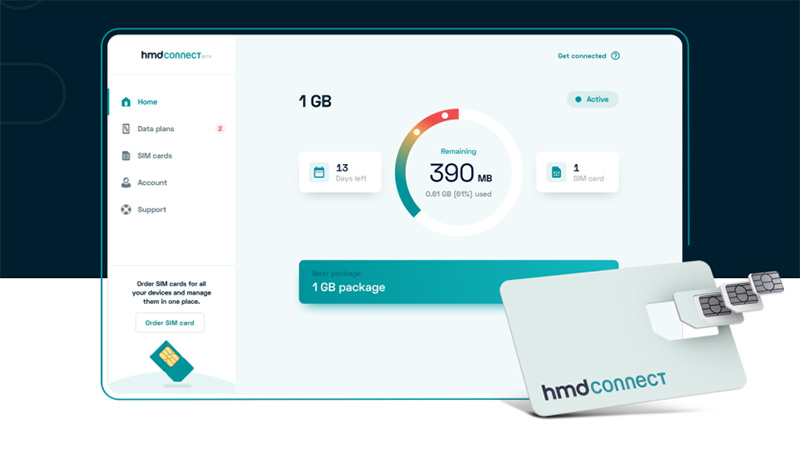 HMD Global 推出了 HMD Connect 全球數據漫遊服務,開啟一個對於該公司來說全新的服務類別。HMD Connect 可讓使用者以更輕鬆的方式與網路保持聯繫,只為需要的東西付費。通過該應用進行註冊後,用戶將會在登記的地址收到一張 SIM 卡,並且可以輕鬆控制自己的數據計劃。HMD Connect 將透過 HMDConnect.com 啟動 beta 測試版本,以期在全球的範圍內帶來安全和負擔得起的數據漫遊,新手入門包售價 19.95 歐元(約合新台幣 673 元),內含 SIM 卡與 1GB 漫遊流量與運費,14 天的全球數距漫遊計畫則從 9.95 歐元(約合新台幣 335 元)起,若想升級計畫則為 5 歐元(約合新台幣 169 元)起價。