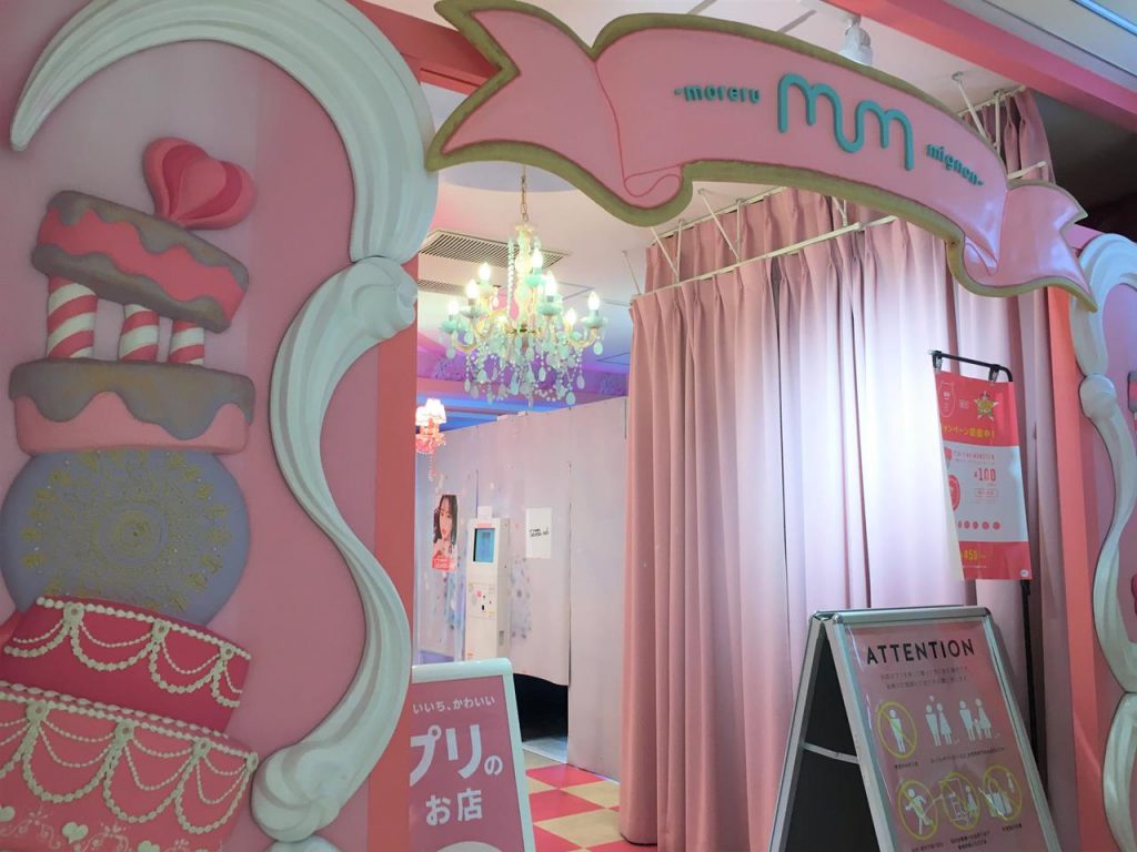 來到6樓有一家貼紙相鋪「moreru mignon」,這裡有著讓人爆發少女心的夢幻裝潢,粉色的佈置與可愛的甜點擺設,單是店內已超好拍!一場來到,花400日幣試試最新款的貼紙相機也不錯,那些放大眼睛與長腿的美圖效果會讓你嚇一跳(笑)