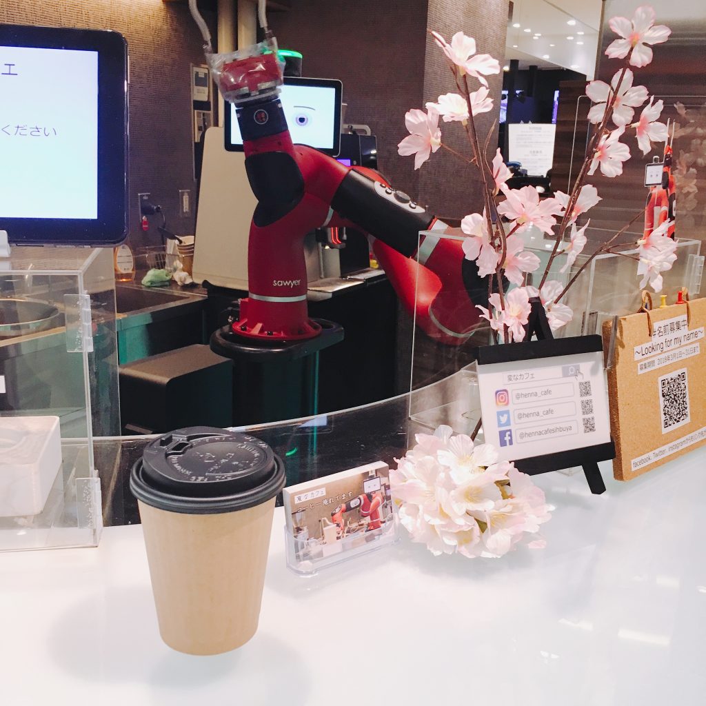 利用旁邊的機器選購喜歡的飲品,然後掃瞄票券上的QR Code,機器人便會靈活地為你調沖咖啡。只要300到500日幣便可見識到日本先進又有趣的科技,而且咖啡味道還不錯喔!