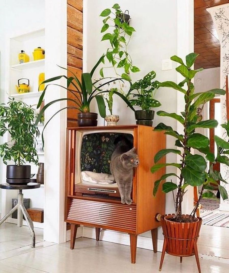 貓咪屬於地域性強的動物,習慣性地找尋隱蔽的地點來躲藏,骨董電視造型挖空機體空間,加入軟墊改造為貓窩,成為一件有趣的家中擺設,三不五時還能驚喜發現愛貓熟睡的可愛身影,這麼犯規的裝置必須擁有!