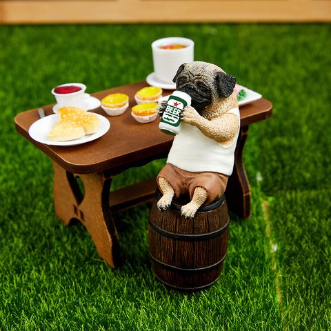 覺得很台灣!穿著吊嘎的巴哥犬,喝著啤酒,短腿短腳模樣,莫名地療慾啊~