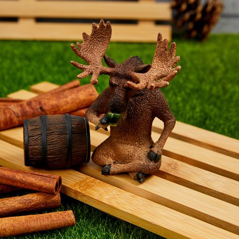 麋鹿喝清酒的模樣,莫名就像千杯不醉的高手~ 盤著腿沉思,人生為何那麼苦!