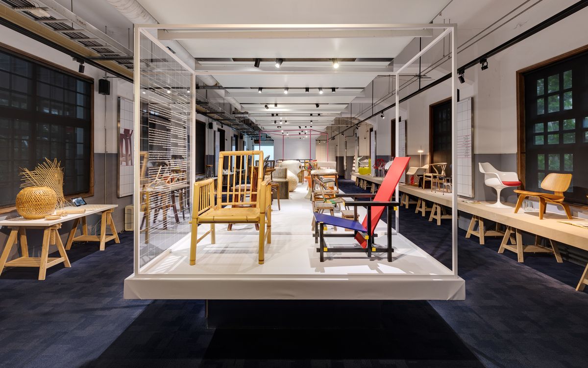 其中,最具指標性的館藏作品為日治時期顏水龍所創作的竹製家具。當時手工藝是穩定農村經濟的幕後力量,匠師們運用竹、木等原生材料,帶入人文巧思,並經由雙手逐一修整,造出獨一無二的手工座椅,感受走進整座竹林般的沁涼。此外,顏水龍認為台灣具備足以誇耀世界的優秀性與特色,因此引進德國包浩斯學校教育理念,進行工藝美術教育,被後世喻為「台灣工藝之父」。本次展覽中,亦將顏水龍作品與包浩斯代表作「紅藍椅」並置呈現,巧妙令東西方展生設計對話,同時更見組裝結構的簡約共通美感,試圖以台灣原創精神作為美學坐標,再釋國際設計史觀。