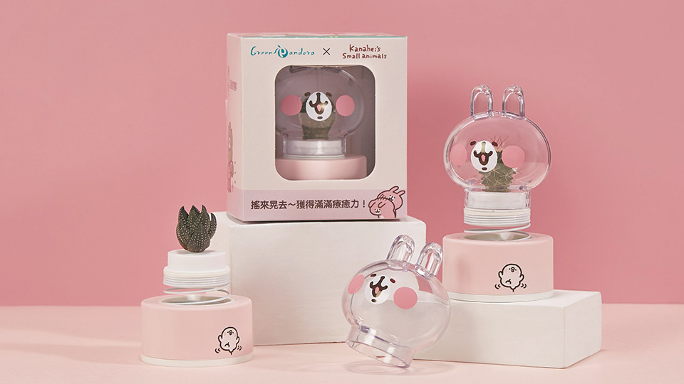 不過首先要說到的,還是這個超可愛的卡娜赫拉「多肉植物舒壓小物」囉!上頭的立體兔兔造型,裏頭罩著的可是多肉植物呢。虹光丸、九輪塔、金剛丸,隨機出貨1款植物,在裡面慢慢生長的樣子,放一個在辦公桌上,真心是會有滿滿的療癒感。