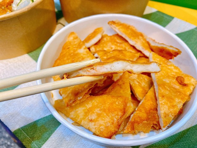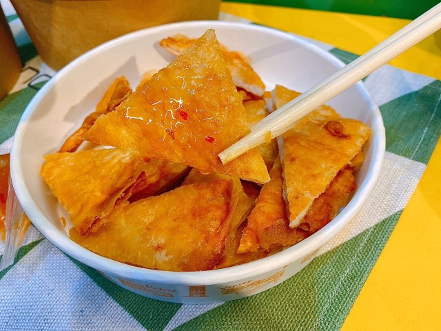 當然那酸酸甜甜的醬汁也是重要靈魂!微酸甜辣的醬汁,和酥脆的月亮蝦餅的味道怎麼如此完美,好吃到讓人停不下來!