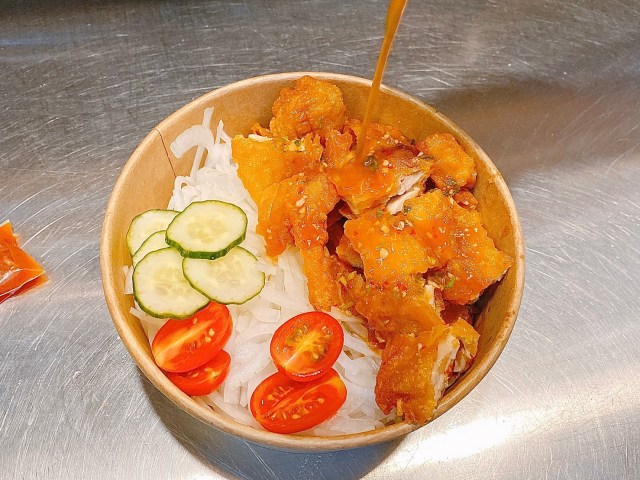泰式椒麻雞底下會鋪已經特別處理過的洋蔥,完全不會嗆辣,而且格外清爽,還有番茄、小黃瓜等蔬菜,搭配味道比較濃烈的泰式椒麻雞,不會油膩剛剛好!