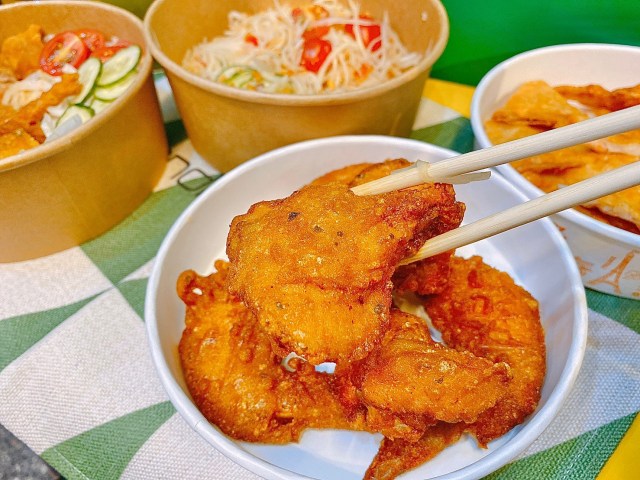 外皮很香脆,有特殊的香茅檸檬風味,格外清爽,肉質很扎實~