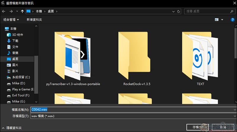 儲存音軌顧名思義就是將目前影片的音軌儲存下來,只單純儲存音軌的部分,格式也能自己挑選,但必須要主畫面先設定好才行 :