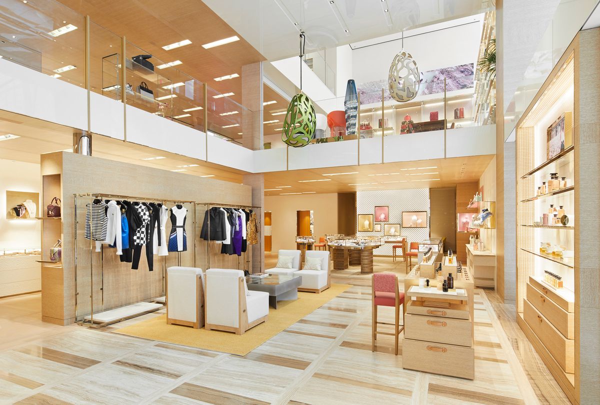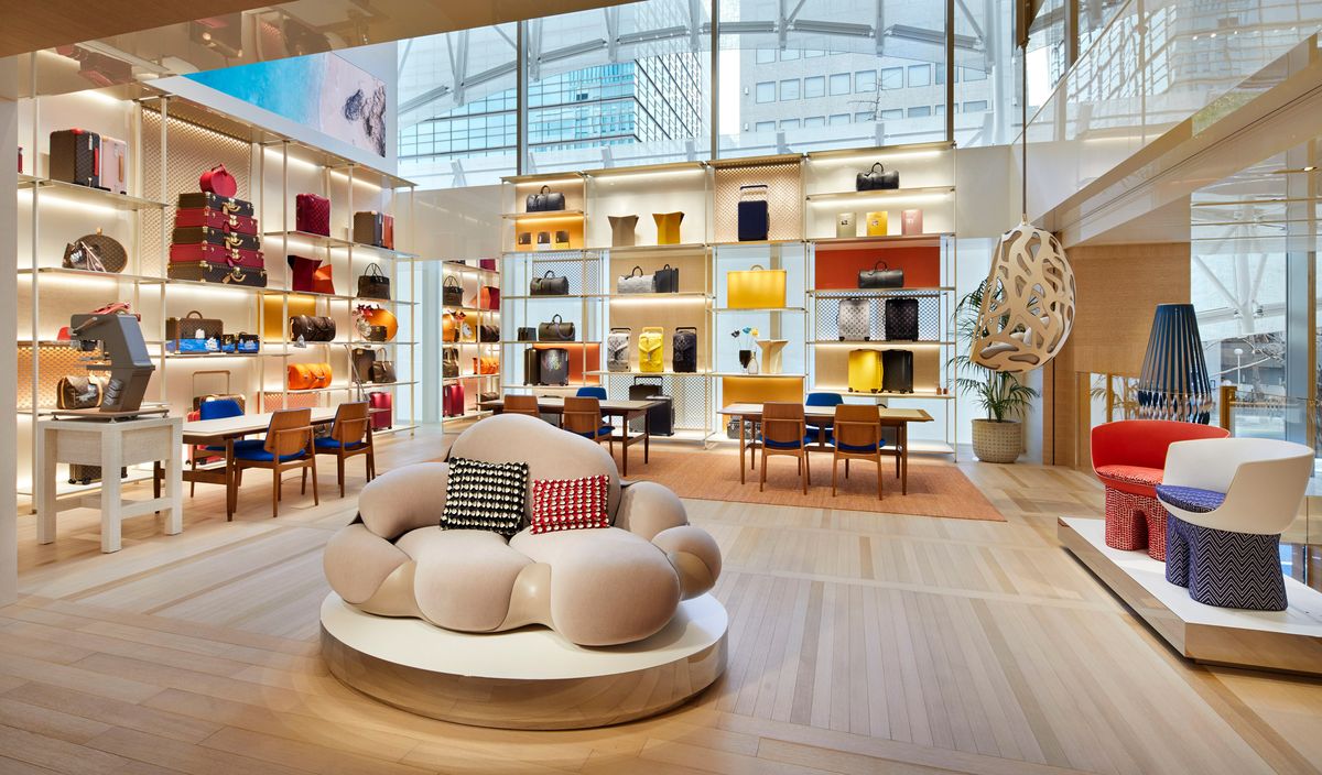 LV大阪旗艦店樓高4層,除了銷售LV的服飾配件之外,也陳列著路易威登檔案館的歷史文物,並販售該公司Objets Nomades系列的當代藝術作品。至於頂樓則是Le Café V的所在地,這也是LV與日本名廚須賀洋介首度合作創見的第一間咖啡廳,而在Le Café V的酒吧旁有一扇隱藏式的門,可通往大樓內的Sugalabo V餐廳,讓人倍感驚喜。