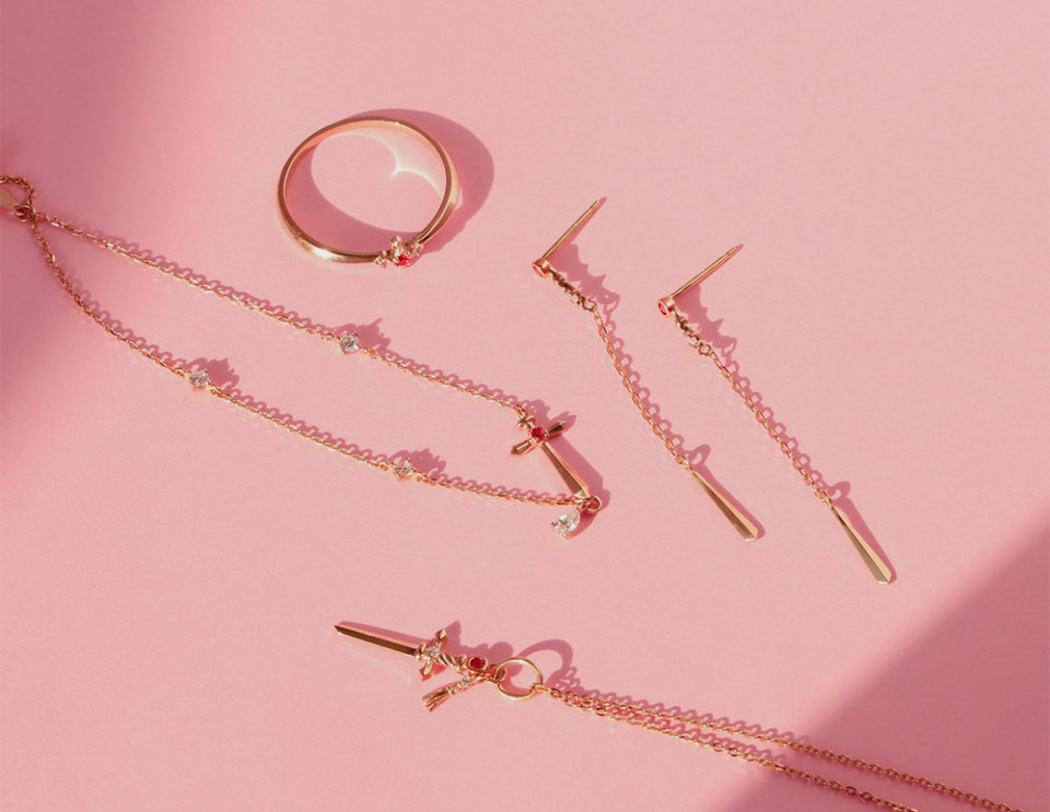以代父從軍的花木蘭上戰場使用的「木蘭劍」為靈感,設計出紅寶石為主的戒指、項鍊、手鍊及耳環,整體風格就像劍一樣俐落,中性的紅寶石劍把造型就像女扮男裝的木蘭一樣帥氣,率性又直接,很適合不喜歡太女性化的朋友們!