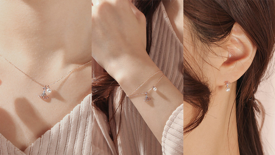 這次將在「花木蘭」裡充滿代表性的木蘭花,變為項鍊、手鍊及耳環,在鏤空木蘭花造型中間使用水鑽點綴,還將其中一片花瓣用粉色寶石裝飾,戴起來就像木蘭花一樣給人唯美高尚的感覺,可以讓整個人更添幾分氣質~