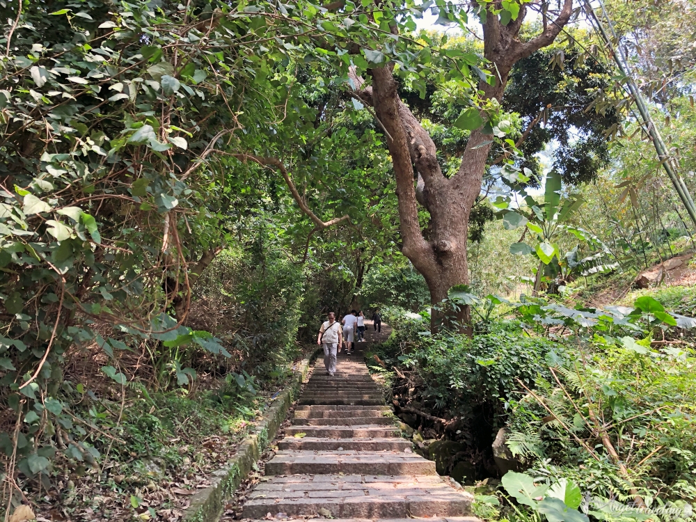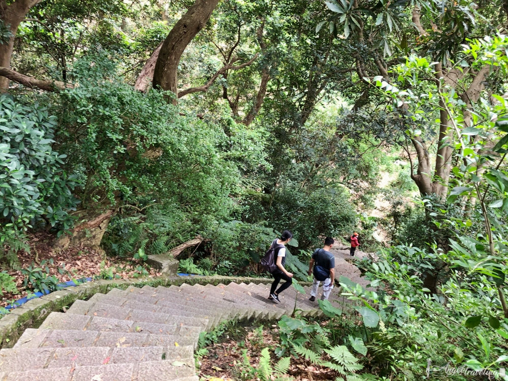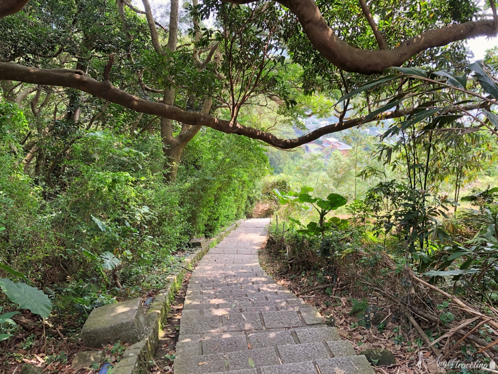 天母古道親山步道雖然都在樹蔭下,但從登山口處採階梯式直線上升,大概要走10-15分鐘後才有平緩的道路,對於平常沒有運動的小弱雞,絕對是非常喘的!