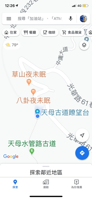 ▼打開google map發現自己竟然相當接近陽明山夜景餐廳啊,以往都是開車上山欣賞夜景,想不到這次是徒步爬上來