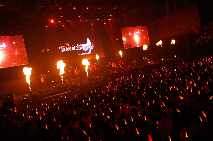 接著輪到《時空幻境熱情傳奇 the X》史雷、米克里歐、蘿潔、艾莉莎登場,象徵著冒險旅程的名曲<風ノ唄>的前奏刮騷著耳膜,讓人忍不住跟著熱唱,隨著 FLOW 創造出的自由之風踏上尋夢之路,緊湊的 < INNOSENSE > 又瞬間讓觀眾的熱情高漲,歡聲雷動,一體感席捲幕張。