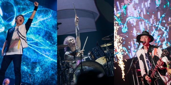 在這最高潮時忽然氣氛一轉,動畫《HEROMAN》的插曲<INVASION>響起,TAKE、GOT’S、IWASAKI 張力十足的演奏將觀眾捲入帶入緊張刺激的漩渦之中,接著片尾曲<CALLING>彷彿衝破桎梏般,讓會場洋溢著希望。