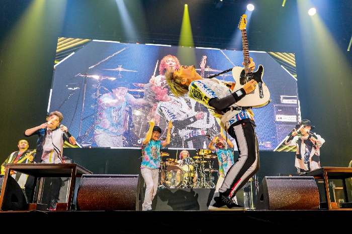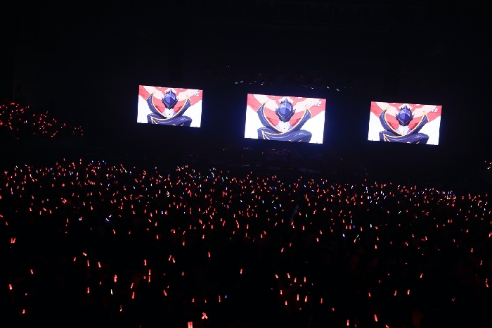 《佛朗明哥武士》羽佐間正義的聲音帶領大家熱唱片頭曲<愛愛愛に撃たれてバイバイバイ>,螢光棒舞者 GinyuforcE & RAB 帥氣登場,KEIGO跟KOHSHI也跟著拿起螢光棒全力展現打藝。 在這讓人忍不住懷疑「還能再更嗨嗎?」的氣氛下,竟然又接了無人不知無人不曉的七龍珠名曲<CHA-LA HEAD-CHA-LA>,這教人怎麼能夠不跟著熱唱副歌呢?動畫劇場版《七龍珠Z 神與神》插曲 <HERO~希望の歌~> 響起,吉他 TAKE 在舞台延伸花道上縱橫奔馳,全心全意享受演出的觀眾,所展現的一體感彷彿聚集全地球力量的元氣彈。