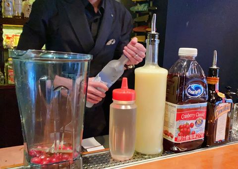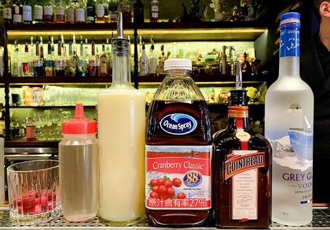 ■準備材料:伏特加、COINTREAU君度澄酒、蔓越莓汁/蔓越莓、檸檬、糖水、冰塊、果汁機、shake杯、濾網、可食用花