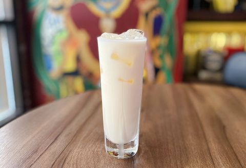 如果妳是個酒鬼,或是想要一喝就微醺,那就要來試試這款以高酒精濃度伏特加為基底而成的甜調酒,使用灰雁伏特加 (Grey Goose Vodka)配上少女們最愛的香蕉牛奶,讓酒精味不那麼濃郁,卻也能帶來微微迷茫的滋味!