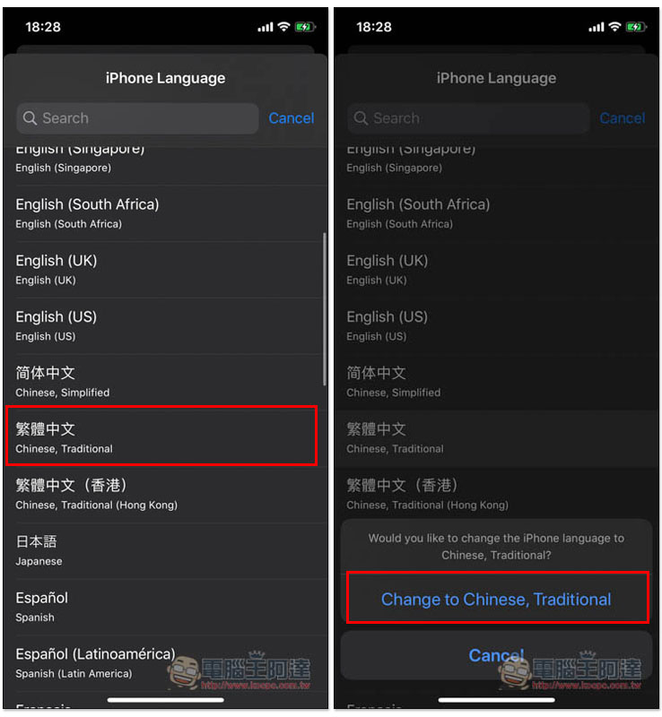 而改回繁體中文介面的步驟如下,打開設定 -> General -> Language & Region,點選上方的 iPhone Language: