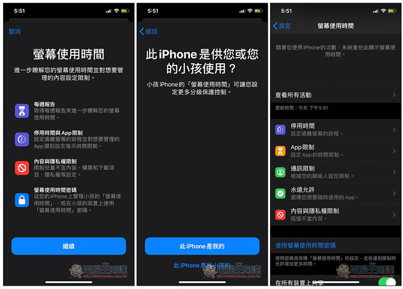 初始設置的流程都跑完後,進到設定 -> 螢幕使用時間,果然變成全新狀態,解鎖成功: