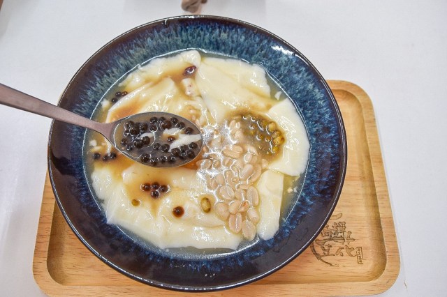 再加上Q彈不過於甜膩的珍珠,讓整杯豆花更有口感,豆花輕透滑順,入口即化,可以當作飲料用吸管喝也可以哦~