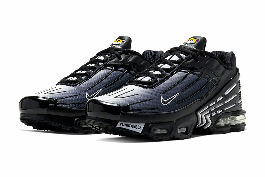 看到 xixikyo 投稿當下瞬間覺得他真的需要一雙更適合的鞋,並不是說原本挑的不好,而是說從上身多層次延續下列,足下確實也需要結構感鮮明的搭配。全黑主調中用金屬配件和多種材質打造層次,且立體口袋與織帶如同外加結構般,將這概念縮小至鞋中,Nike Air Max Plus III 後跟立體支撐片與科技滿載的外露式氣墊,都是顯眼的存在,且漸層色彩讓鞋款更與服裝調性契合。