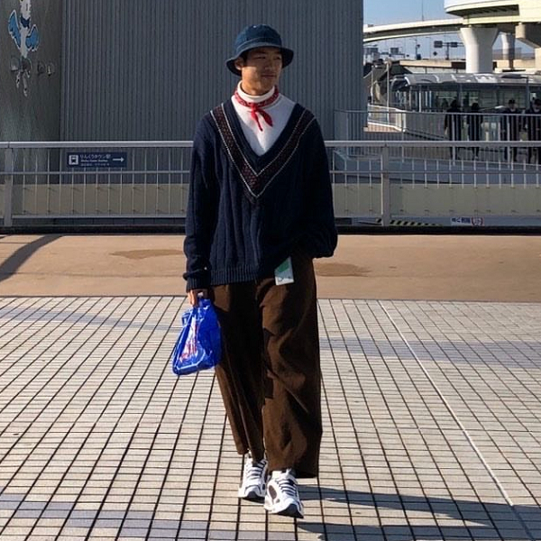 帶點日式學院感的穿著,寬鬆的剪裁恰如其分給人輕鬆恣意視覺,針織背心為全身上下的重點單品,一件衣服完成所想呈現氛圍的基底,混合高領內搭不會如襯衫拘謹,又比平口圓領多了些層次。Nike Air Max Tailwind 99 是明智選擇,復古跑鞋本就與日式穿著風格相襯,挑選全黑配色又不會過於搶眼吃掉全身重點,掌握平衡技巧就是 @pinchizeng 這次受人青睞的關鍵。