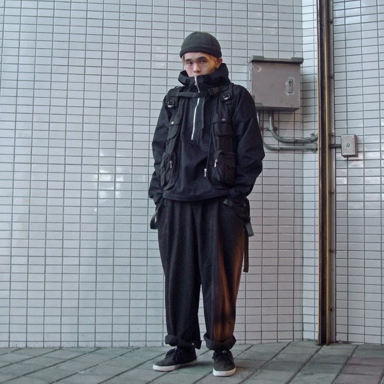 reason:「這套穿搭重點是在全黑中穿插銀色要素,以及較硬挺的 anorak,透過這些來達到金屬、機械感,這雙鞋也完美的補足了這些要素,更符合 cyberpunk 感覺。」
