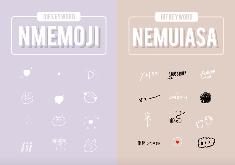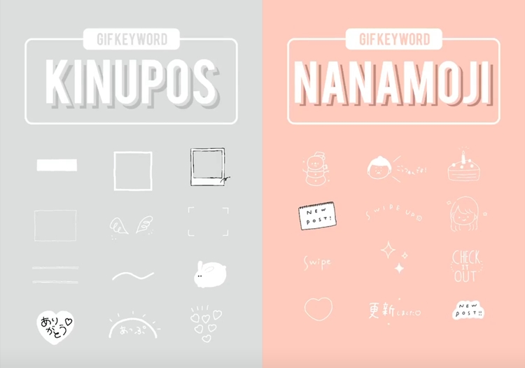Nanamoji這組也是非常實用,不管是英文還是日文都有,還有各種手繪風的裝飾小圖,如果忘了其他關鍵字怎麼拼,這款GIF圖可真的要記起來!再來這組kinupos比較多是邊框或是線條的小圖,也算是蠻常會使用的小插圖。