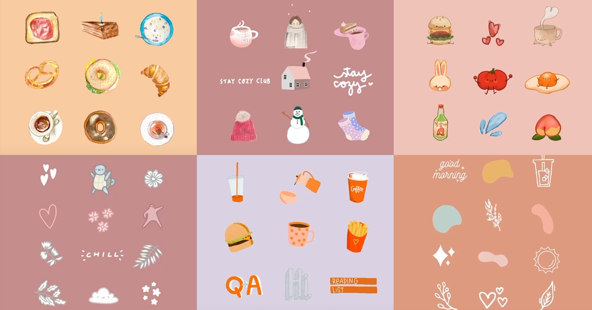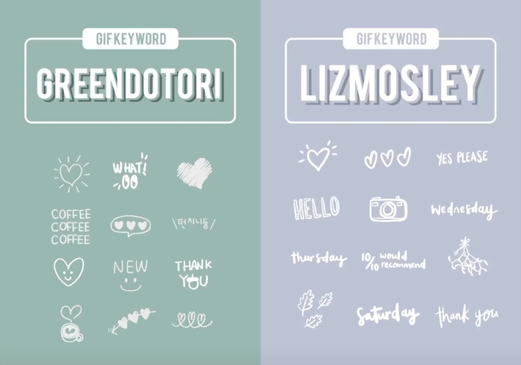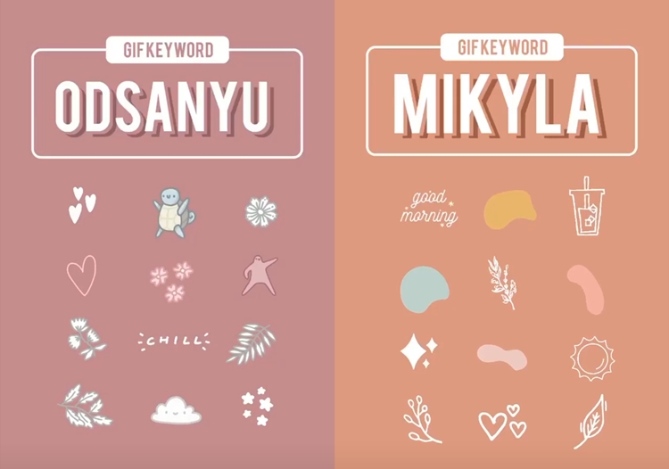 如果想找的文青一點的可愛小圖,這2組一定要記起來!第一組的odsanyu,光看它這麼可愛的GIF圖就贏了一大半,讓人少女心大爆發,看了都會想要趕快發個IG Story來試試!最後這組mikyla,這個關鍵字它有很多不規則的圖形,很適合用在文字的下方當裝飾。