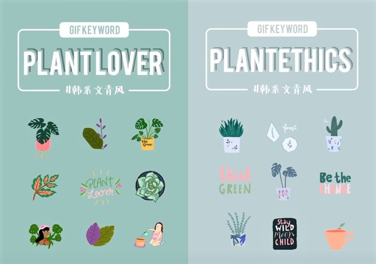 喜歡花草樹木綠色植物氛圍的朋友們,推薦2組關鍵字給你們!第一組叫做PLANT LOVER,它的花草樹木種類最多,喜歡文青風的你,這種花草是佈置你IG Story的重要靈魂人物呀!而第二組的關鍵字是PLANTETHICS,喜歡灰綠色色調的朋友們,這款你可不能錯過,除了一些植物,它還多了一些英文字做搭配,喜歡這類風格的可以去尋寶一下。