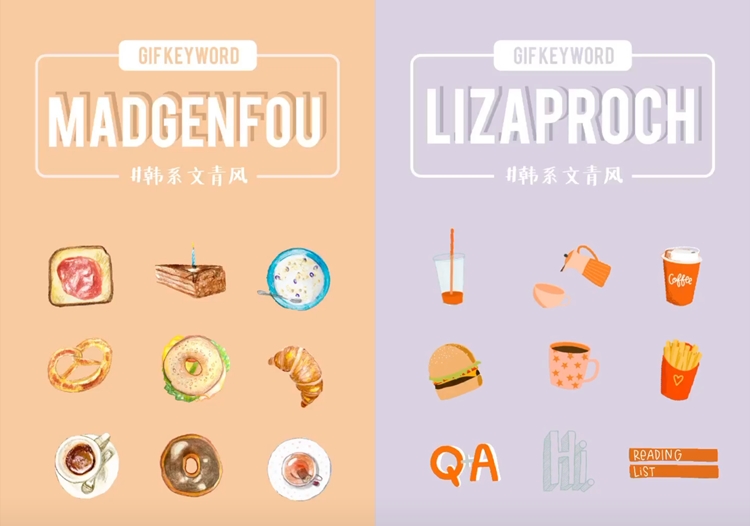 吃貨必備的GIF圖來囉!想要蒐集一些食物畫風的GIF圖嗎?只要輸入MADGENFOU就可以找到囉,這裡有超可愛的手繪食物,包你用了會愛上!那如果你想要找飲料元素的話,也可以搜尋LIZAPROCH,各種常用食物貼圖都可以用喔!