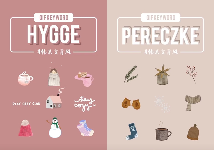 如果你現在所處的地方是秋冬或很冷的話,可以多多使用這2組GIF喔!第一組HYGGE裡面有超多冬天可愛的配件啦,而且還有各種不同舒適的英文字眼,可以多多運用。相信大家對文青風格的小物愛不釋手,那第二組的關鍵字PERECZKE必收!雖然跟上一個一樣都是比較冬天的配件,但這款的貼圖真的都超可愛的啦!