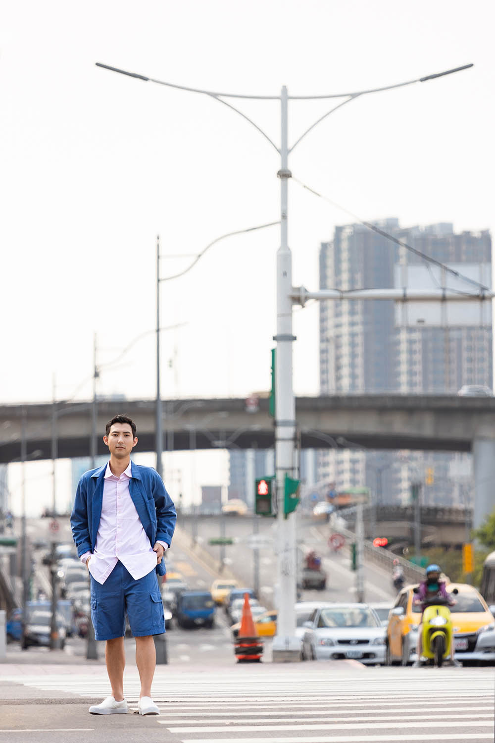 「我真的不會擺pose」,劉沛直嚷著,但讓他站在斑馬線上,雙手一插,挺帥的啊!