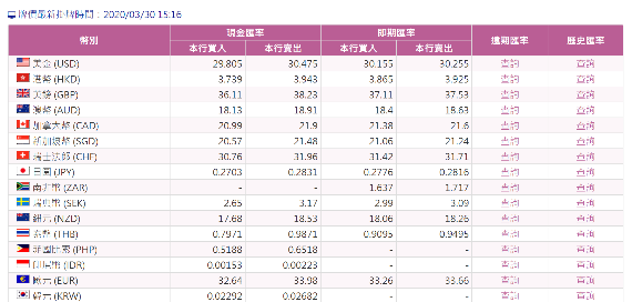 至於「現金匯率」或「即期匯率」,只要記住,「現金匯率」代表的是整個交易過程中,都是用現鈔進行(你看得到現鈔);而「即期匯率」則是看不到實際的現鈔,也就是用帳戶交易。