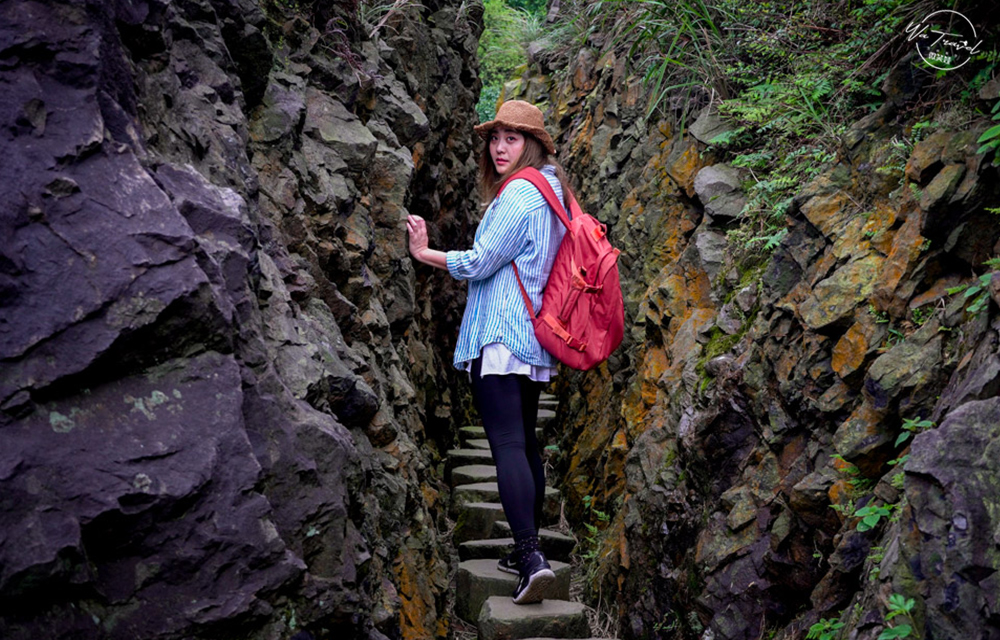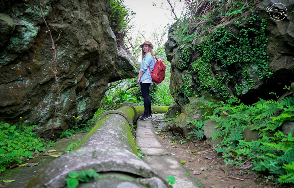 在鹿港聽過「摸乳巷」沒想到在新北市瑞芳也有一個羊腸小徑被戲稱「新北摸乳巷」,要前往這個私房景點可以連同路徑山尖古道訓練一下小體力因為大多為階梯,需要一點體力爬階梯,尋找內九份西圳橋眺望著山與海與石璧呈現出自然與歷史的時刻,由於前人將巨石鑿開讓山壁間開道出一條令人驚嘆的水路小徑,此新北私房景點新北摸乳巷拍起照來非常有衝擊力道。