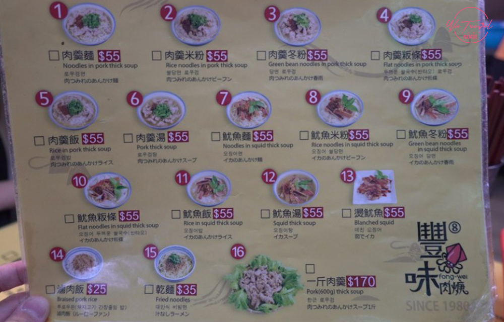 當日點餐:滷肉飯NT.25、魷魚湯NT.55、肉羹麵NT.55、肉羹粄條NT.55
