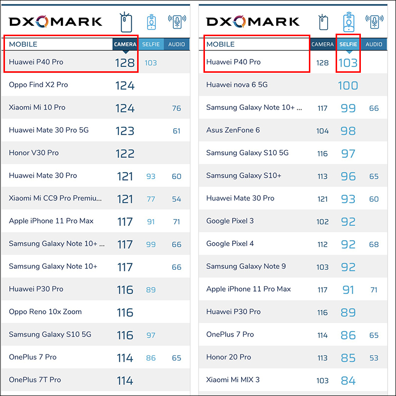 華為 P40 Pro DxOMark 相機評分出爐!主相機、前相機皆排名第一!