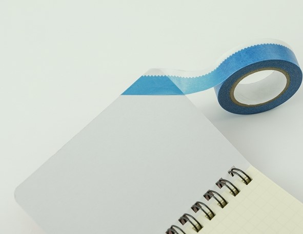 可以當作簡約的白色花邊藍色紙膠帶去使用,但當你斜著剪,剪成梯形便會輕易出現富士山圖案!就像上圖一樣,用來包著書角的話,可愛又特別!一卷只要540日幣,文具控買來收藏也不錯!