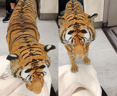 看看捷運車廂中要是出現巨型老虎,怎麼可以不拍下來留念?!