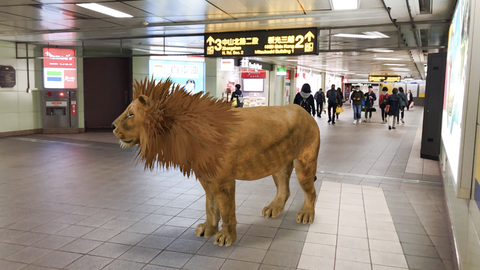 在捷運站遊走的獅子,只要妳比例調整得宜,看起來就跟真的一樣!