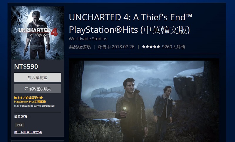 而PS Plus 4月份會員將能下載到《秘境探險4:盜賊末路》,這次故事背景設定在上一次的冒險旅程結束後過了數年,退隱了的寶藏獵人奈森德瑞克被迫回到盜賊的世界,只是這次的賭注與他個人有更密切的關係。德瑞克這次將踏上跨越世界各地的冒險之旅,追尋傳說中的海盜寶藏背後隱藏著的歷史陰謀。這場驚天動地的旅程將會考驗他的體能極限和決心,以及為了拯救親愛的人他最終願意付出什麼代價。《秘境探險4:盜賊末路》 (中英韓文版) 目前PS Store售價為NT$590元。